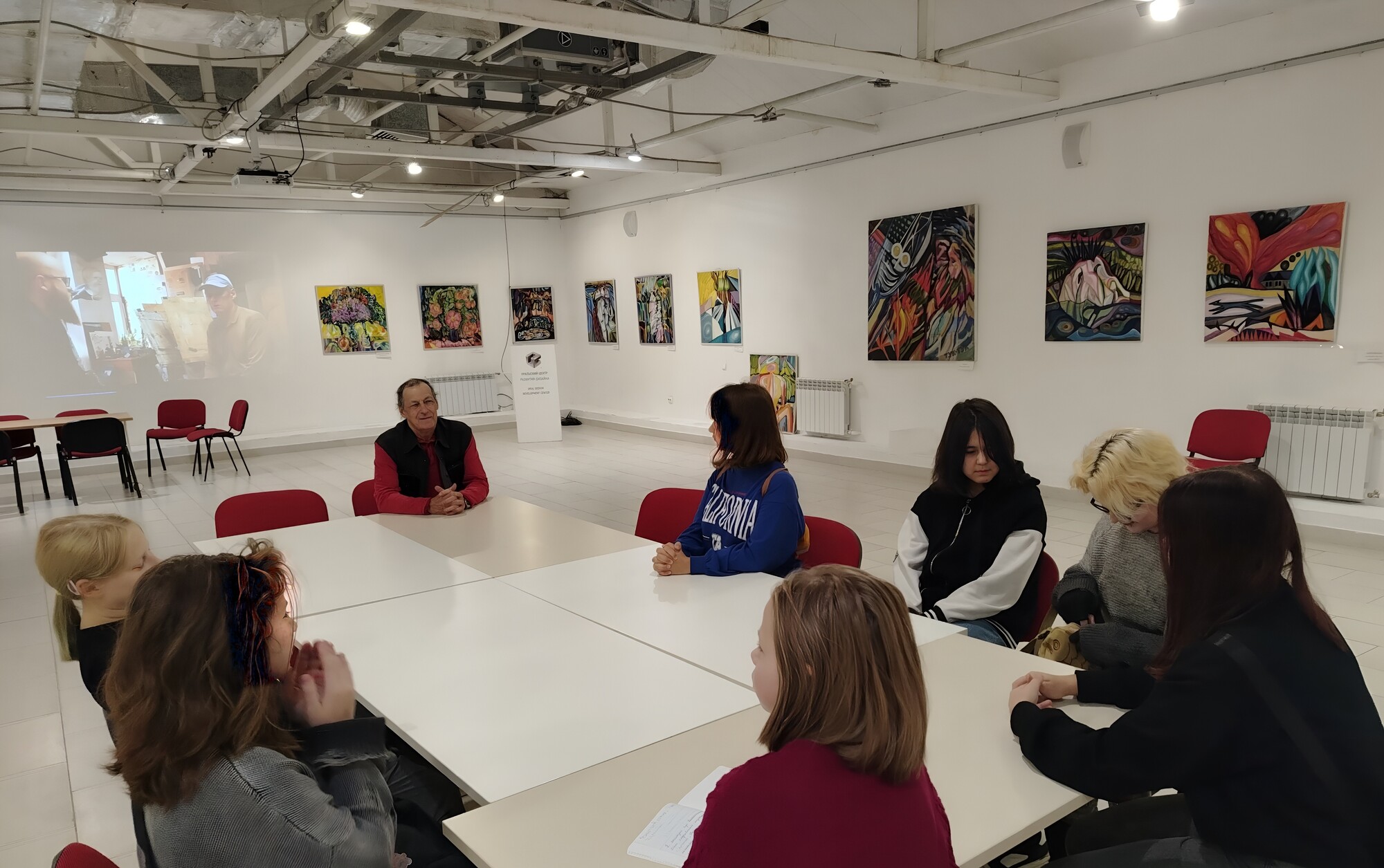Юные художницы из студии «Скетчинг» под руководством Евгении Рифовны Юнышевой посетили экспозицию известного екатеринбургского живописца Льва Леонидовича Хабарова. Он поделился историей своего профессионального становления и подчеркнул, что в искусстве важно не только умение точно передавать действительность, но и умение выражать в рисунках личные чувства и переживания, вызванные жизненными событиями.