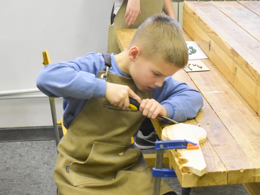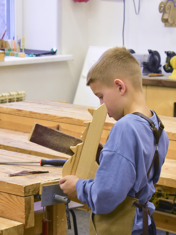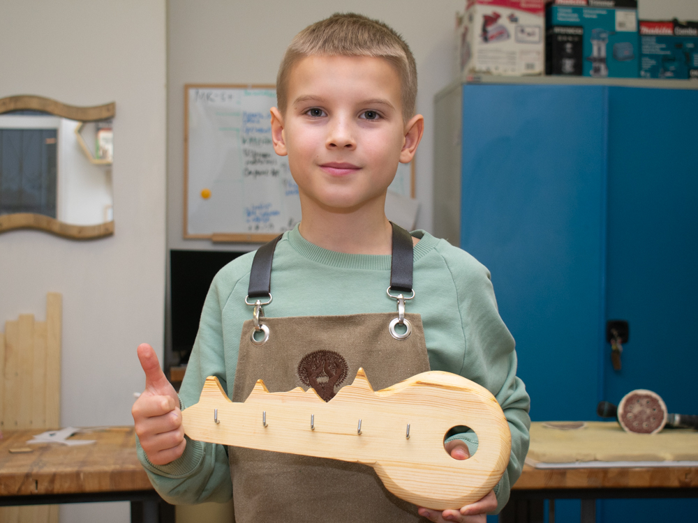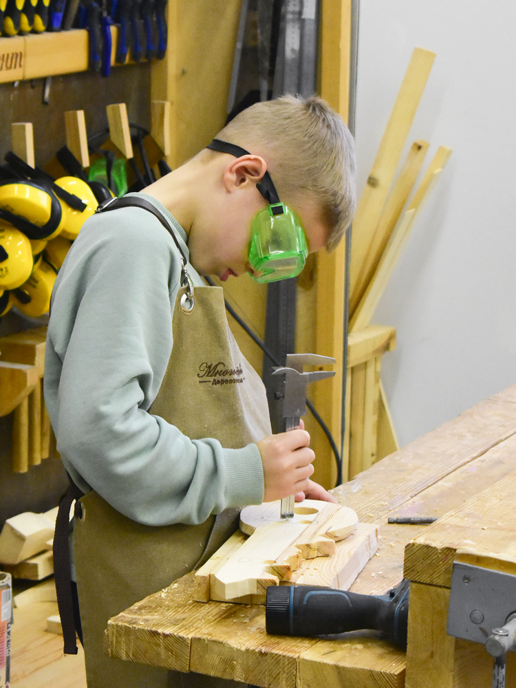 Программа «Мастер-Поделкин» предназначена для детей в возрасте от 7 до 9 лет. Она направлена на развитие творческих способностей, пространственного воображения и мелкой моторики. Занятия проходят под руководством педагога Андрея Петровича Клименкова, который вдохновляет ребят на создание уникальных изделий из дерева.