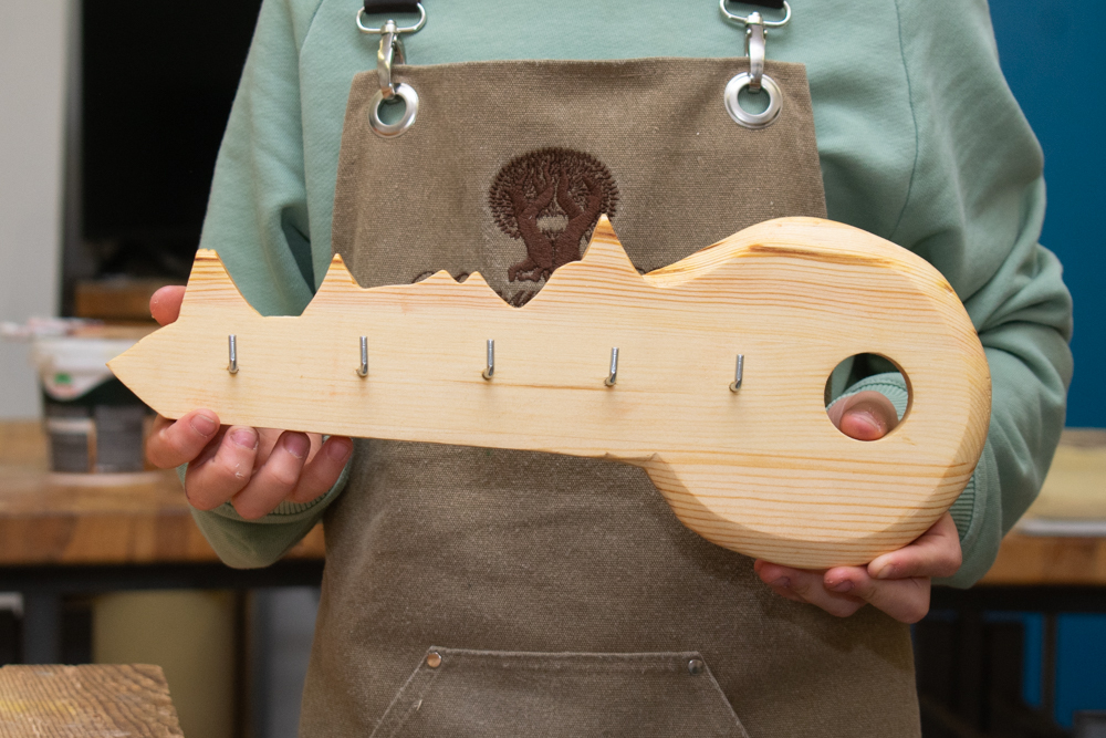 Создание деревянной ключницы потребовало от обучающегося проявления навыков художника и умения ремесленника. Первым делом Степан разработал собственный эскиз будущей работы, определив размеры и форму. Затем приступил к изготовлению основы: подготовил деревянные рейки, ровно нарезал их и аккуратно склеил щит. Используя лобзик, бережно вырезал контуры основной формы, придавая изделию выразительность и завершённость. Но на этом творческий путь не завершился: Степан посвятил немало времени художественной отделке своей работы, обрезая её по контуру специальной стамеской. Финальным аккордом стала установка необходимой фурнитуры, обеспечивающей удобство пользования ключницей. Благодаря старанию и усердию, результат превзошёл ожидания и заслуженно занял первое место на престижном конкурсе декоративно-прикладного искусства.